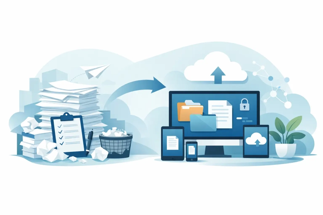 Najczęstszy błąd polega na tym, że organizacja próbuje ograniczyć papier punktowo. Wprowadza skanowanie, ale nadal wymaga wydruku do podpisu. Udostępnia formularze PDF, ale dalej obsługuje akceptacje mailowo. Rezygnuje z części teczek, jednak dokumenty pozostają rozproszone między folderami sieciowymi, ERP, pocztą i archiwum fizycznym.