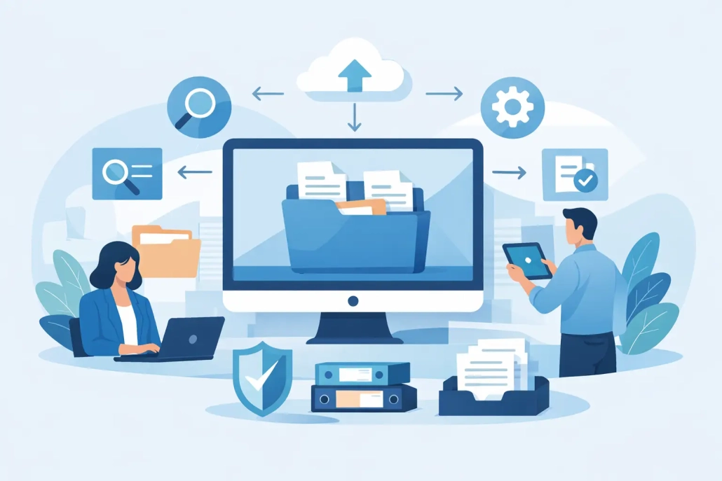 System do zarządzania dokumentami nie powinien być rozumiany wyłącznie jako elektroniczne archiwum. Samo przechowywanie plików rozwiązuje tylko część problemu. W praktyce firma potrzebuje środowiska, które obejmuje rejestrację dokumentów, klasyfikację, wersjonowanie, kontrolę dostępu, wyszukiwanie, obieg akceptacji, retencję oraz pełną historię działań.